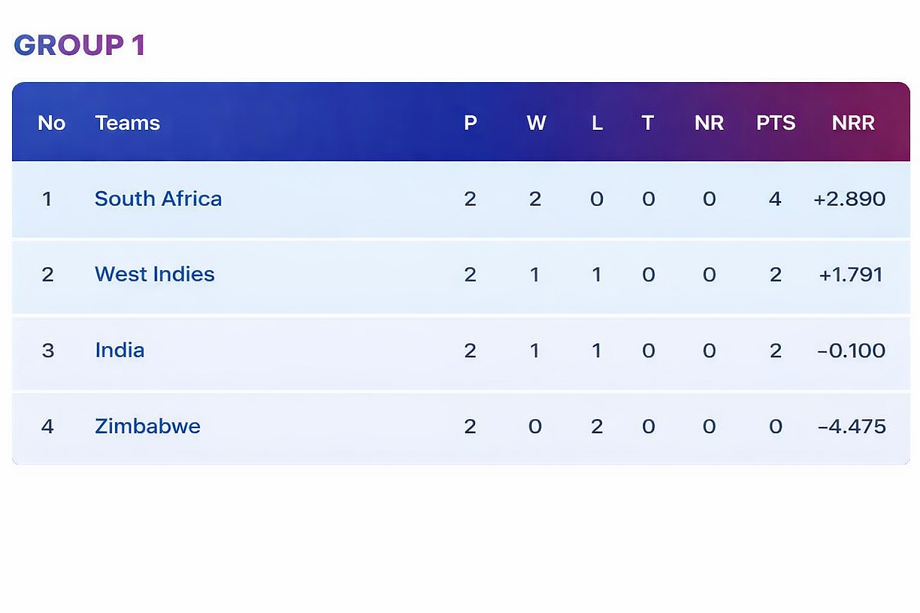 This is a straightforward path for Team India to qualify for the final four. Nothing like NRR matters at all. Simply beat the West Indies and secure a semi-final berth. No multiplication or division required. A win over the West Indies will give India four points. If South Africa defeats Zimbabwe in its final group match, South Africa will remain on top with six points. India, meanwhile, will be in second place with four points. In this scenario, both India and South Africa will directly qualify for the semi-finals. West Indies will remain on two points and be eliminated from the tournament. But there's something here that could make India's path difficult in case of an unexpected result.