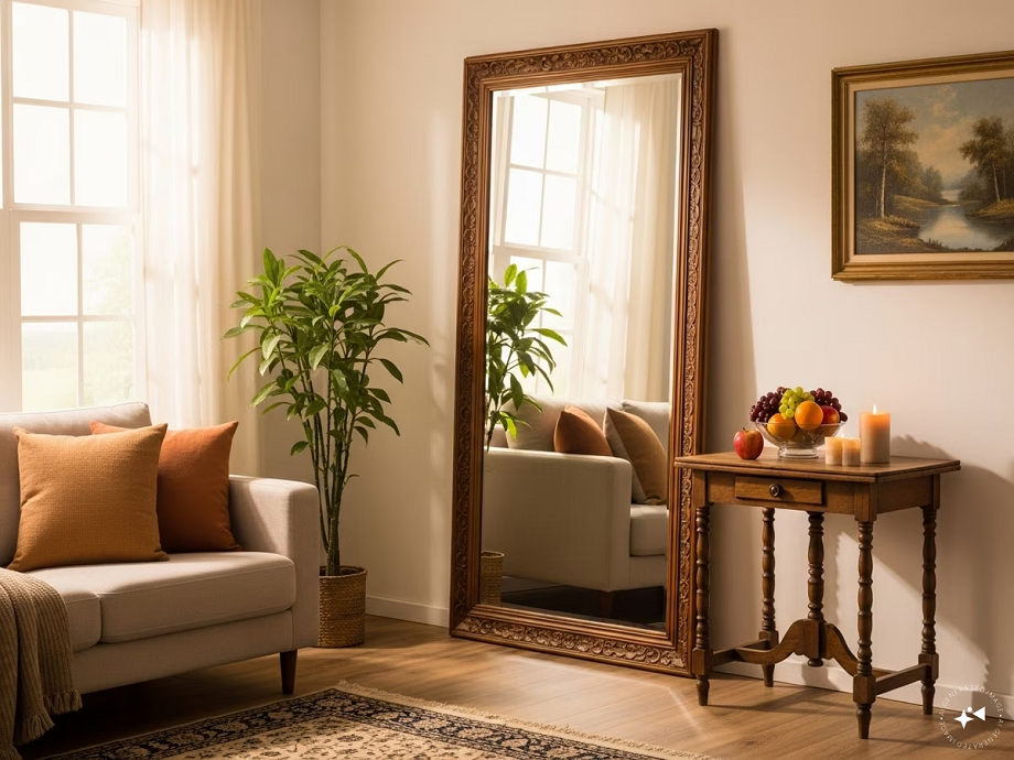 3. Frame: A wooden or metal frame is auspicious; avoid frameless mirrors.