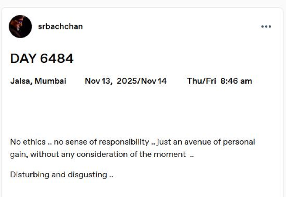 — Amitabh Bachchan (@SrBachchan) November 14, 2025