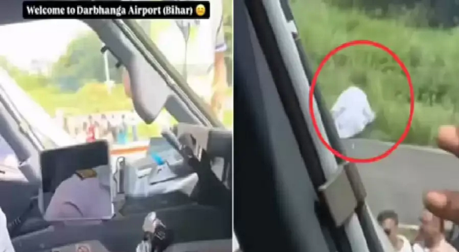 A video of a bizarre incident of an elderly man urinating near an aircraft on the runway at Darbhanga airport in Bihar has gone viral. The alarming incident took place when a man dressed in traditional white kurta-pyjama was seen sitting near the aircraft on the active runway. The pilot made a video of the incident from the cockpit, in which the man is seen standing on the grassy area just a few metres away from the aircraft.