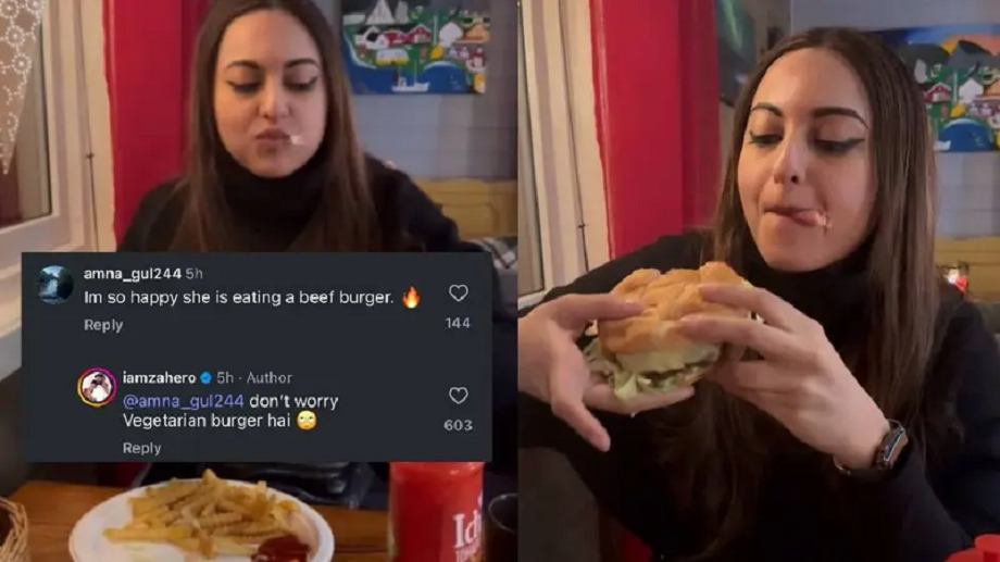 Was Sonakshi Sinha eating beef burger? Husband Zaheer Iqbal gave a befitting reply to fan's comment