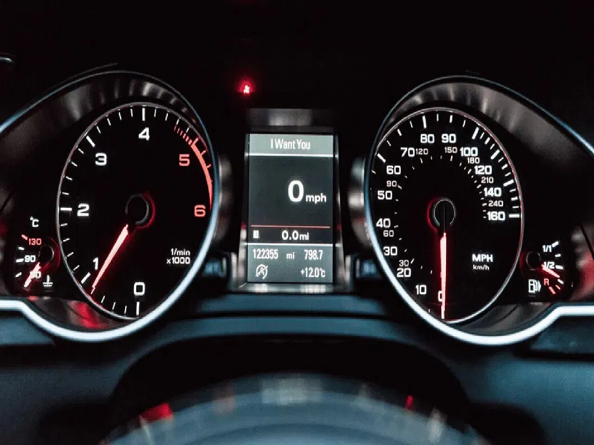 Digital-Analog Instrument Console: Displays speed, fuel level, odometer, and trip meter.